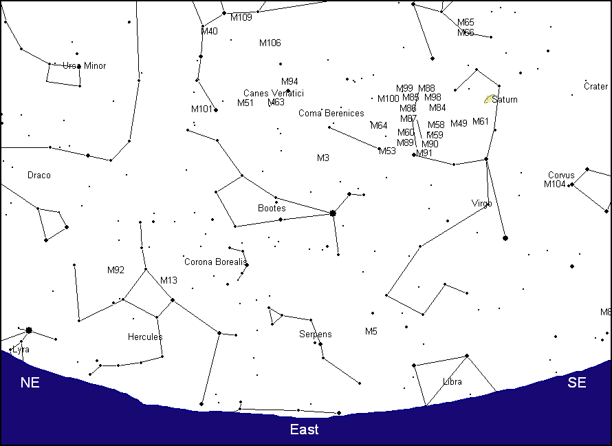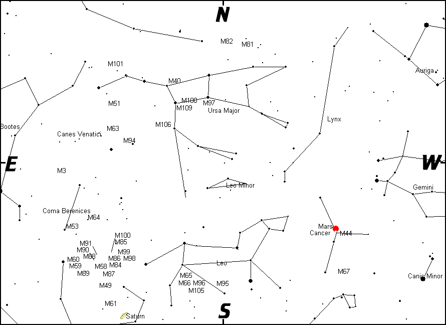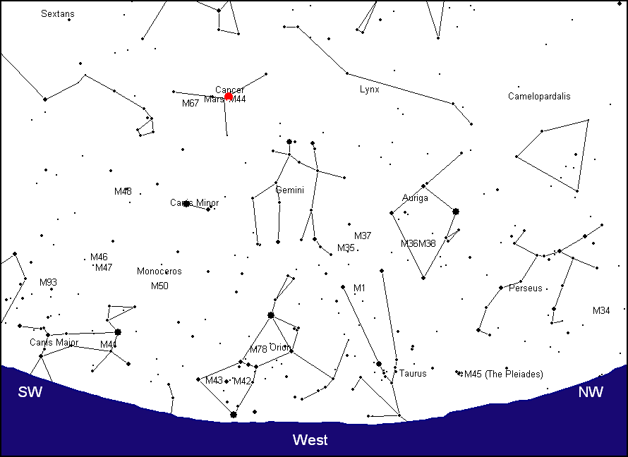Venus and Mercury were seen in a pristine sky during evening twilight on April 14. Tomorrow Mercury will sit nest to a very thin crescent moon. The forecast is for cloudy sky conditions at that time. This image was taken with a Canon 40D camera and a 70-200mm, F/2.8 Canon zoom lens attached to an equatorially driven mount. The exposure lasted for 30 seconds, F/4.5, ASA 400 at an EFL of 144mm. A light pollution filter was used to dampen unwanted light near the horizon. An image with the drive motor turned off was "snapped" immediately after the original photo to keep the landscape sharp. Afterwards, the two pictures were merged using Paint Shop Pro. Image by Gary A. Becker from Coopersburg, PA... |