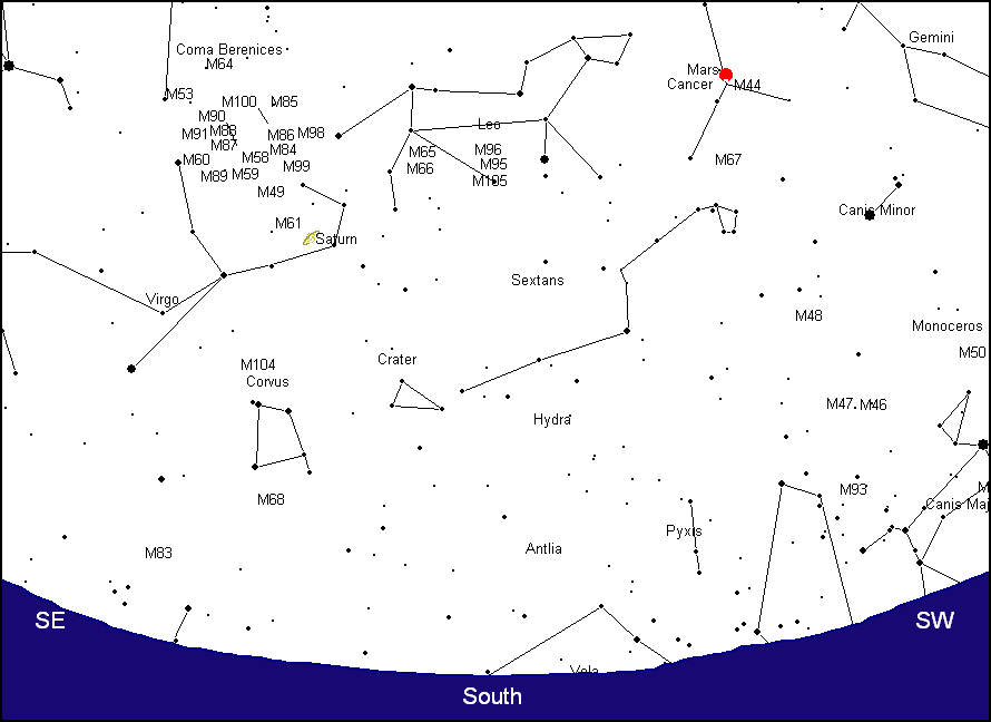 Venus and Mercury brightened the evening sky during the early evening of April 10. By Thursday, April 15, a razor thin crescent moon will stand next to Mercury making the scene truly gemlike. This image was taken with a Canon 40D camera and a 70-200mm, F/2.8 Canon zoom lens attached to an equatorially driven mount. The exposure lasted for 8 seconds, F/4.5, ASA 400 at an EFL of 160mm. An image with the drive motor turned off was immediately taken after the original photo to keep the landscape sharp. Afterwards, the two pictures were merged together using Paint Shop Pro. Image by Gary A. Becker in Coopersburg, PA... |