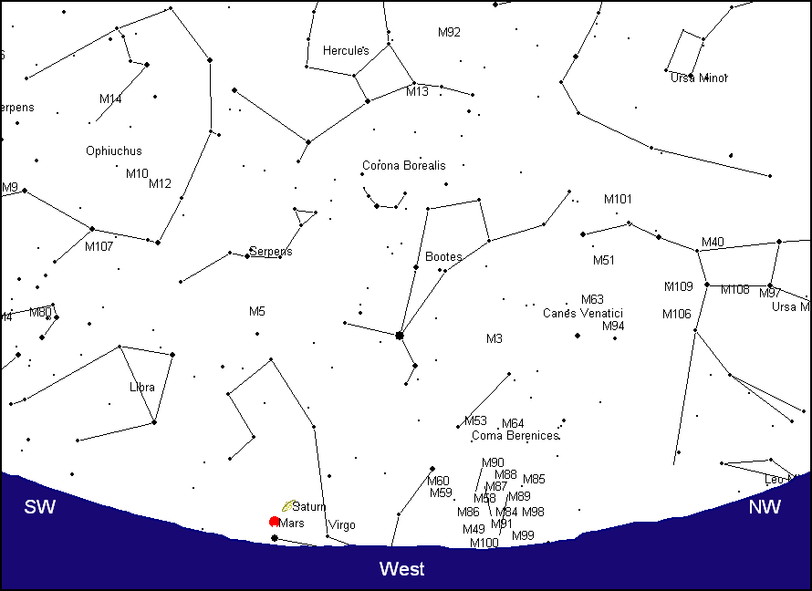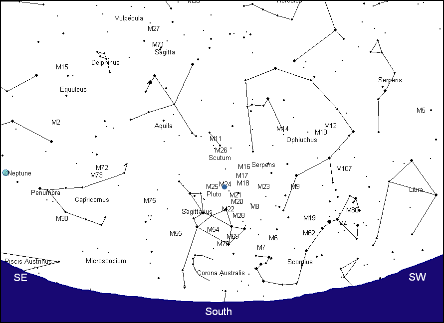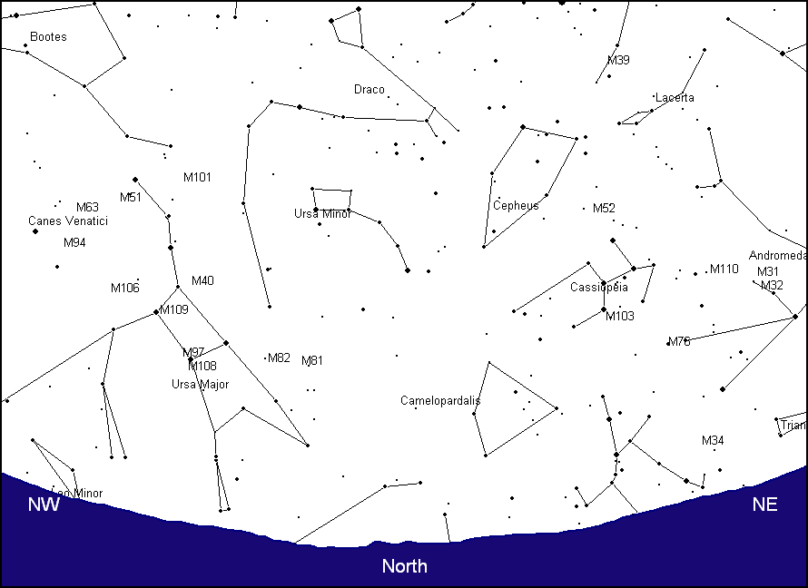| Perseid meteors will be flying all through the weeks of August 5 and the 12. Maximum night for the US will fall on the morning of August 12. This map is set for about midnight. Software Bisque graphics by Gary A. Becker... |