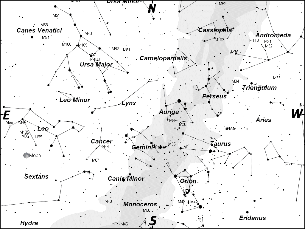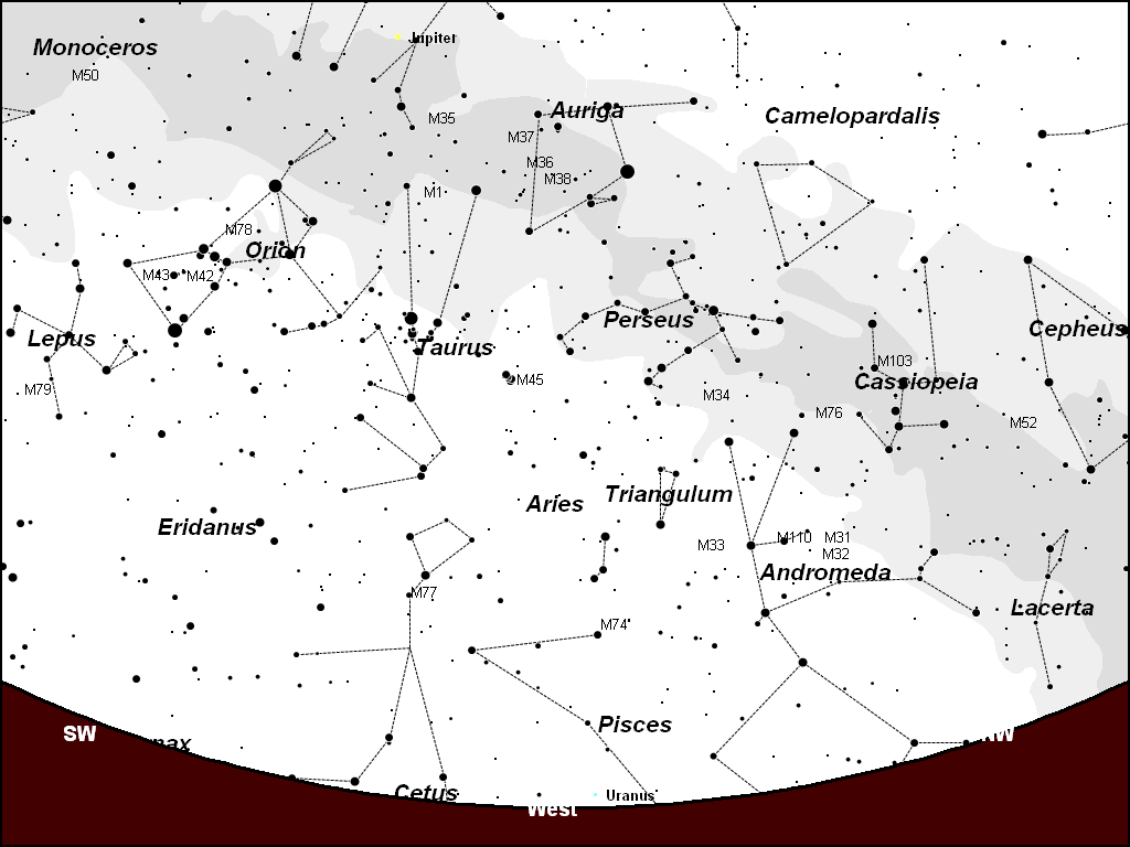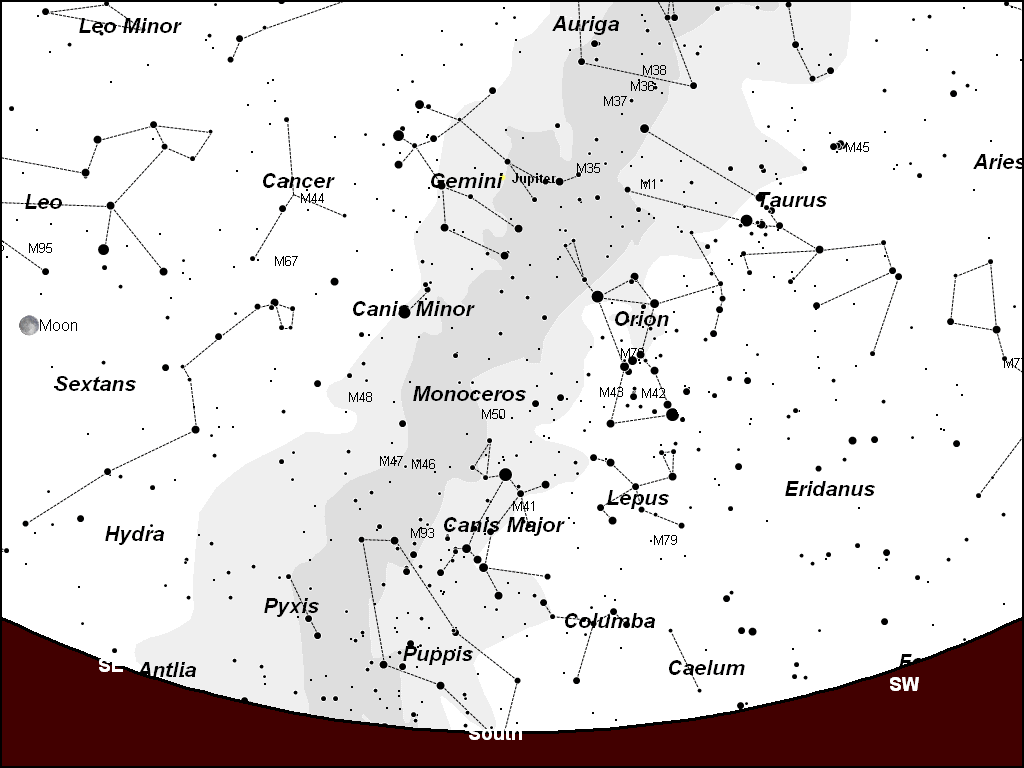 | Look for the winter group of constellations, due south at 8 p.m. in mid-February. Map created by Gary A. Becker using Software Bisques' The Sky... |