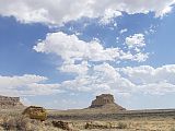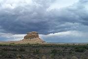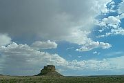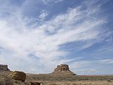 Fajada Butte is the most prominent geological feature of Chaco Canyon. Near its summit is the Sun Dagger, an Ancestral Puebloan calendar, which was designed to channel sunlight past three rock slabs to form a sunlit dagger or daggers on a spiral. It marked both the solstices and equinoxes at noon. The Sun Dagger is located in Chaco Culture National Historical Park near Nageezi, New Mexico. |