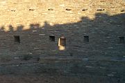 Casa Rinconada is the largest Great Kiva in Chaco Culture National Historical Park, located near Nageezi, New Mexico. Built about 1050 AD, great kivas were used as places of public ceremony by the Ancestral Puebloans. Great kivas were always aligned to the cardinal directions. In the case of Casa Rinconada, a window pointing towards the northeast catches the sunlight at summer solstice sunrise and illuminates a niche in the kiva's circular masonry wall. |